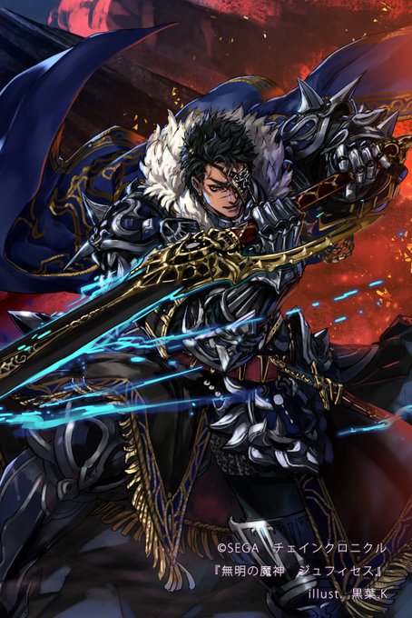 チェインクロニクルにて現在開催中の魔神襲来イベント「無明の魔神 ジュフィセス襲来」に登場の『無明の魔神 ジュフィセス』(CV:稲田徹 様)のイラストを担当させて頂きました。魔神のキャラクターは初めてになりますね、宜しくお願いいたします!
