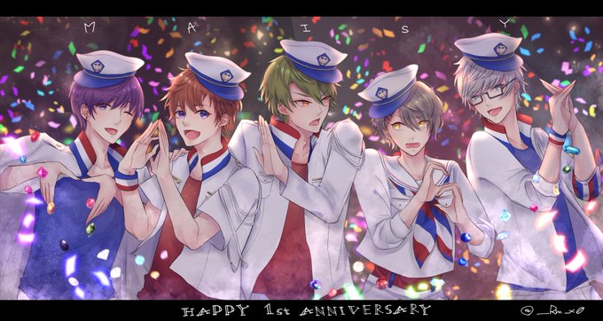 イベントお疲れ様&1周年おめでとうございま〜す✨ 1年前のラフを描き直しためいしーでお祝い…!💜🧡💚💛💙 ※衣装簡略化 ※n番煎じの手文字アルファベット #オンエア_FA