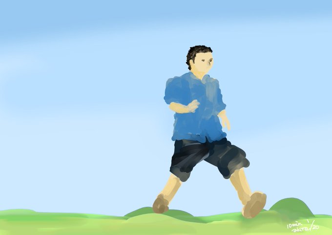 6日目 出先なのでスマホにて作画 子供の手を握る手(石膏)、溢れた蜂蜜、走る男児