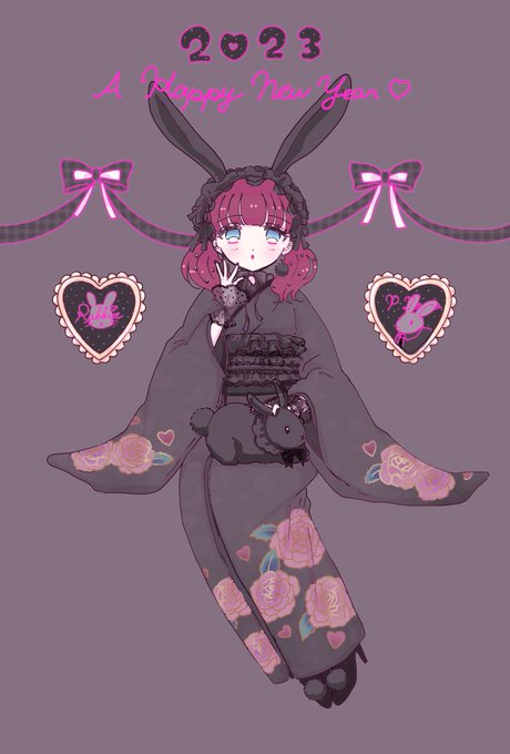 あけましておめでとうございます!卯年のお年賀やっと描き終えました〜🐰白うさぎと黒うさぎバージョンも作ってみました🤍🖤 今年もどうぞよろしくお願いいたします #佐久間まゆ #まゆすき
