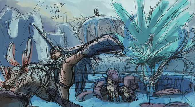 さっきのイラストの製作過程gif ラフがとてもひどいしとても迷走した
