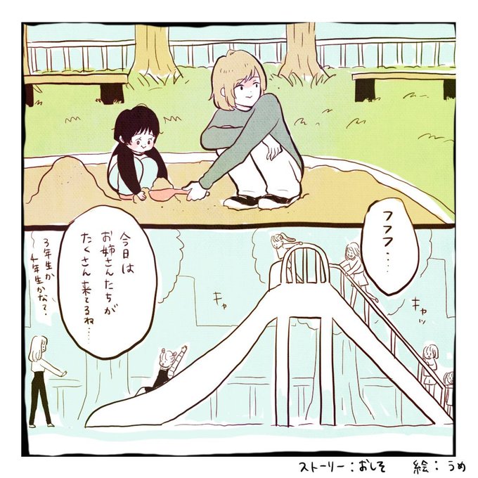 公園に居た最高にcuteな子達の事を日記にしたいのに私の絵では魅力を伝えきれなくて…可愛く元気でポップに可憐な絵が素敵なうめちゃん@umememumemem にお願いして描いて貰いました!ざっくりな説明からイメージ通りの漫画になって心の縄跳びダンスが止まらない…皆液晶が擦り切れるくらい読んでくれ!