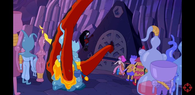 여기까지 컷이 나오는 시간대가 어느정도 근접해 있다면 마셀린이 유리병들을 처치하지만, 다시 합체하였고 버블검은 마셀린에게 (들리는 대로) " turn off (혹 of) the river " 이라고 말합니다 이 문장은