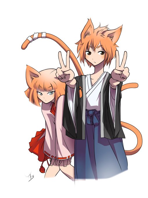 #双子の日なのでお宅の双子キャラ紹介して下さい 猫目田兄妹 神社の住み着く野良猫 3枚目はやっさんが描いてくれたやつ(かわいい