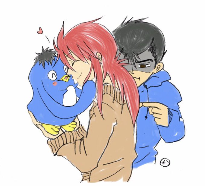 @yomikurayuukura @hirotomorio ヤバイヤバイwwなんか面白くなってきた! 黄泉+修羅+蔵馬描いたよwww 蔵馬T買ったんだって! ほぼ初書き黄泉様コレだよ!怒らないでね!!