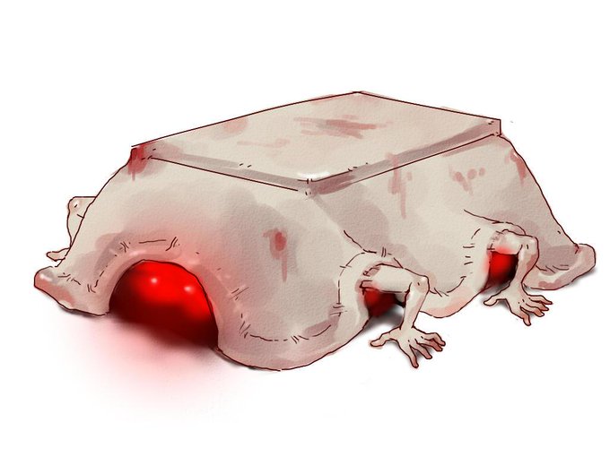 クリーチャーかくの楽しーーーー 前描いたコタツの妖怪でてきた