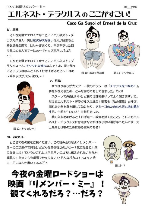 私の最愛の推しエルネスト・デラクルスのプレゼン資料を再掲します!!!!!!!!! 今夜の金曜ロードショーはリメンバー・ミーです!!!!ぜひ観てください!!!!!