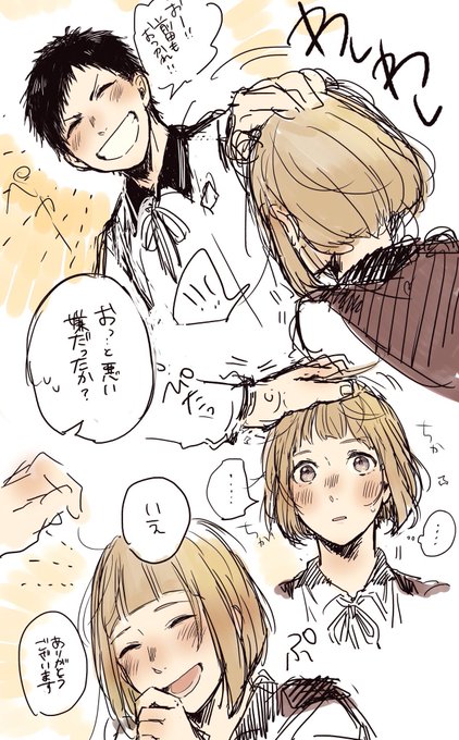誰って感じですが乱と三日月でした! #夏なのでリプきた刀剣男士の髪を切る 全然書きなれてない二人なので修行します~;;でも資料集みててお互い片方だけ髪ながいのかわいいほんと…おそろ…