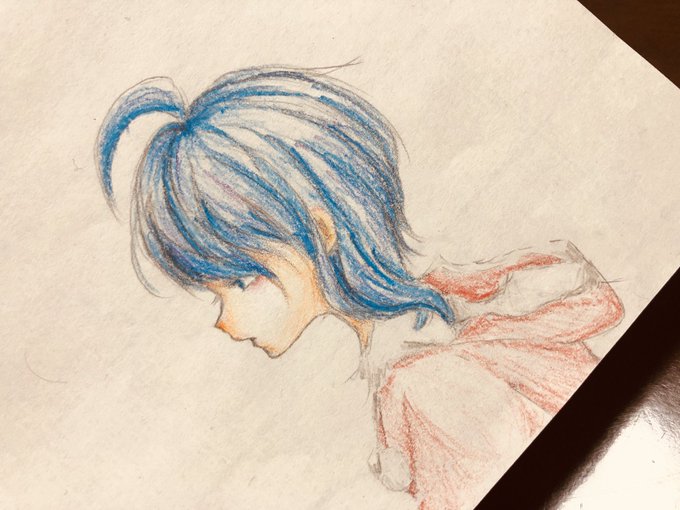紙に描くの楽し٩( ¨̮ )۶ #オリジナルキャラクター #イラスト #青髪