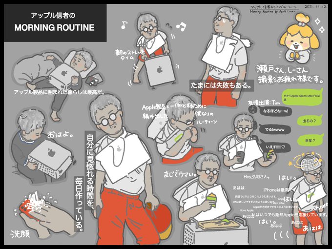 最高のモーニングルーティンでした🍎 #瀬戸弘司 #瀬戸さん #ぷーん #Apple #モーニングルーティン #イラスト