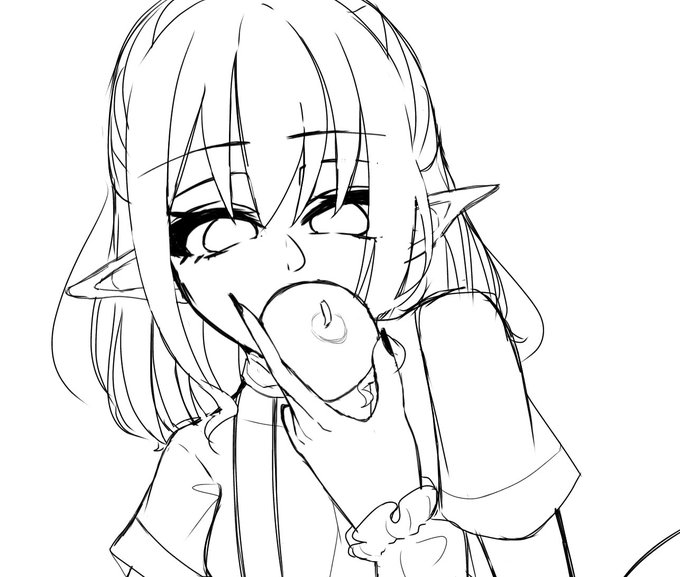 #皆さん線画と塗った後を見せてください こんな感じ 線画はほぼラフ
