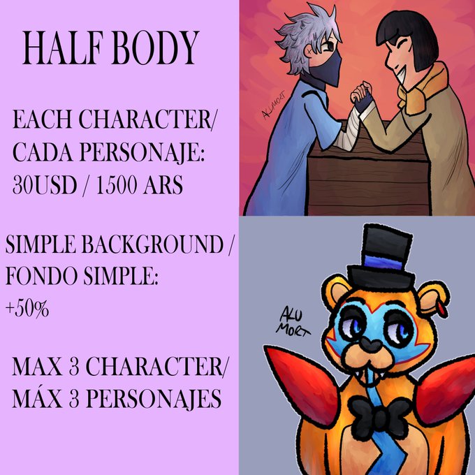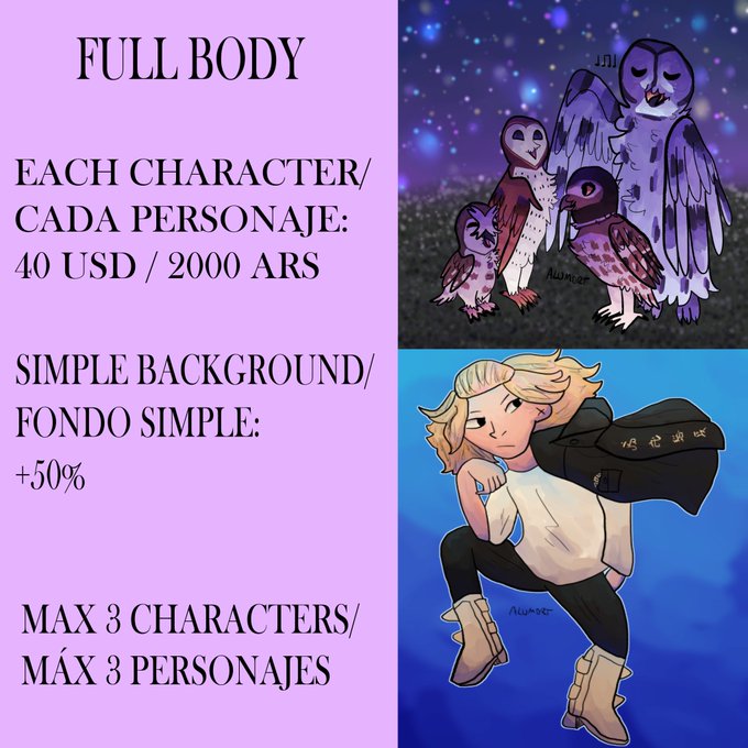these are my prices and some examples! You can see more art on my media tab or my carrd:
