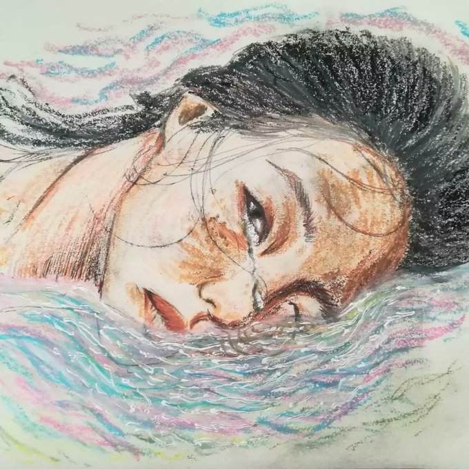 a single tear dropped from your eyes // oil pastels and colored pencils on paper