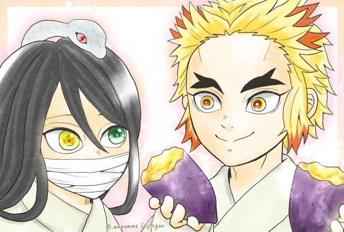 イラストは煉獄さんと炭治郎と禰豆子🐄