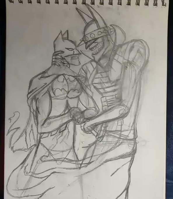 The Batman who laughs slicing into Batman AKA Joker with a leather fetish.