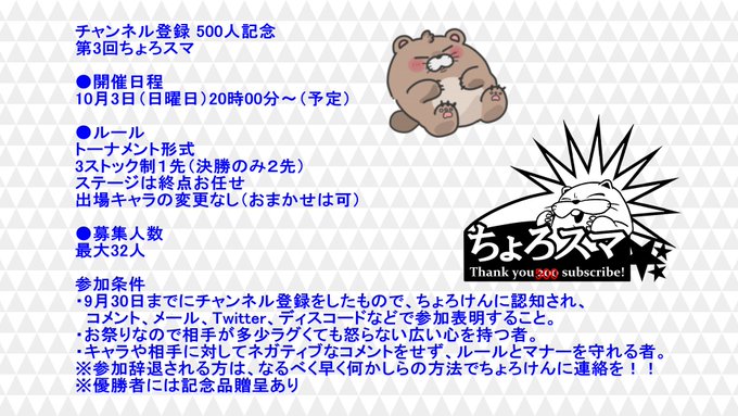 【登録者500人突破のご報告と第三回ちょろスマ開催の告知】