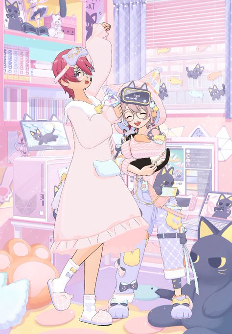 昨晩の配信のカオスな猫2匹載せ忘れてた()