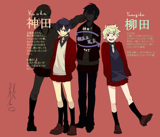 田のつく奴等の関係図。 同中かつ同クラス。爽やか黒髪コンビと賑やかし染髪コンビ。 高校では対角線上に同じクラス。