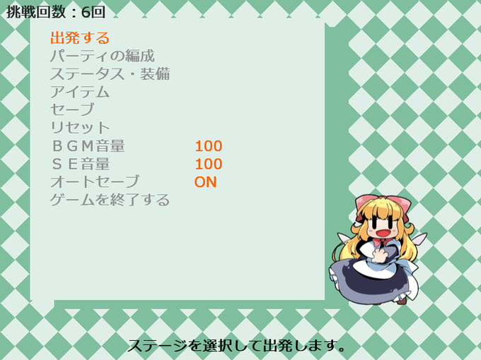 新作RPGのメニュー画面では戦闘に参加する人形のイラストがランダムで出ます。上海人形だったり、ゴリアテ人形だったり…