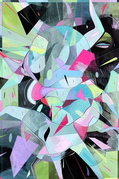 My work is an investigation of consciousness, the human condition, technology + the universe. Using abstraction, I create visualizations of these different, yet interconnected subjects. Painting is a way for me to explore and understand how it is that we're here.