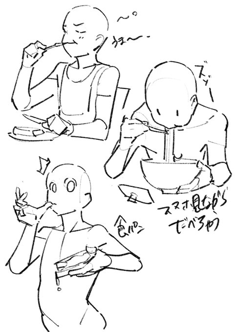 腕組、食べる