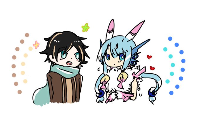 @umiriku_TL ほわほわしてるラハイア君と、なんか照れてきてもじっとしてるアイリーン( ˘ω˘ )