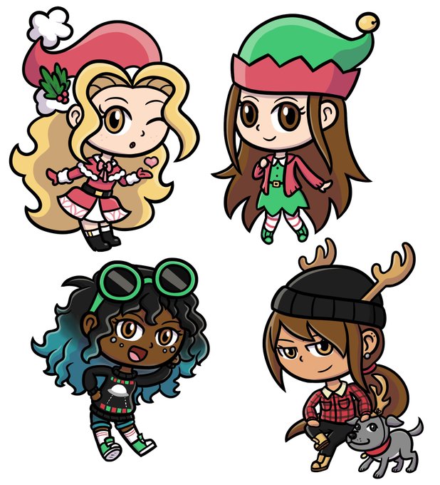 @lucariogirl78 @ScarletMyrmidon @Mad_Hattress1 @PlayRenegade #kidsonbikes #christmas #chibi #digitalart