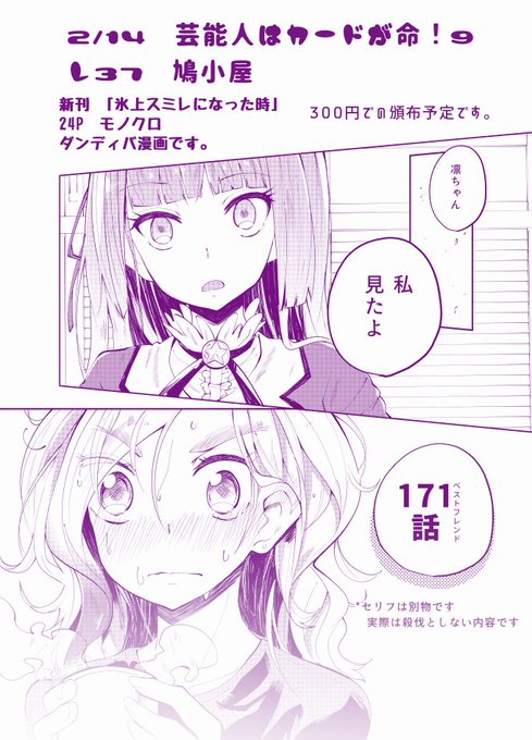 【芸カ】レ37鳩小屋 にてサークル参加しております。ダンディバの二人が喋ったりする本です。先着でチョコがおまけについたりします。よろしくです~~~