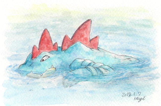 長らくお待たせいたしました。 リクエストボックスに頂いた「オーダイル、顔は半分出しながらワニらしく優雅に泳いでる様子」です。プカァ。