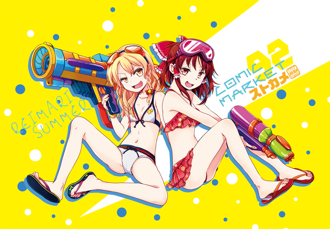 会場では新刊のおまけで、レイマリうちわが先着でつきます。夏なのでビビッドな感じにしてみましたー。派手ですw 是非使って涼んでください。