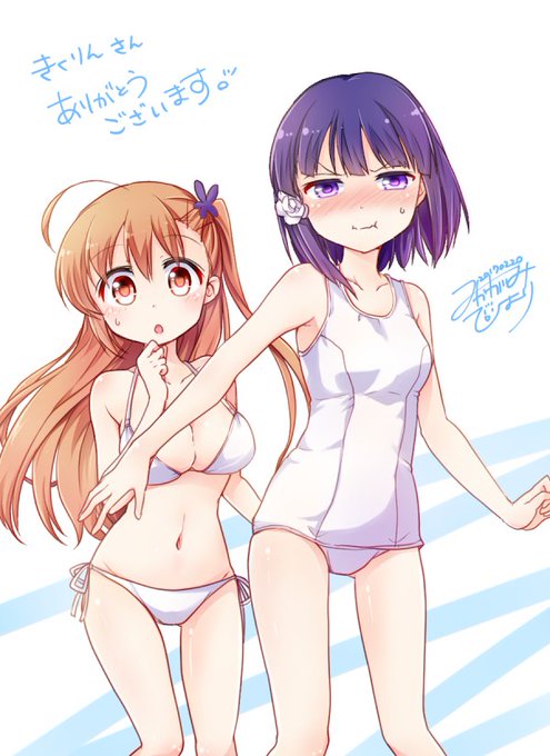 大変お待たせしました! 白ビキニのすみれと白スクの雪乃です。リクエストありがとうございました! @kanekaesepiyoko