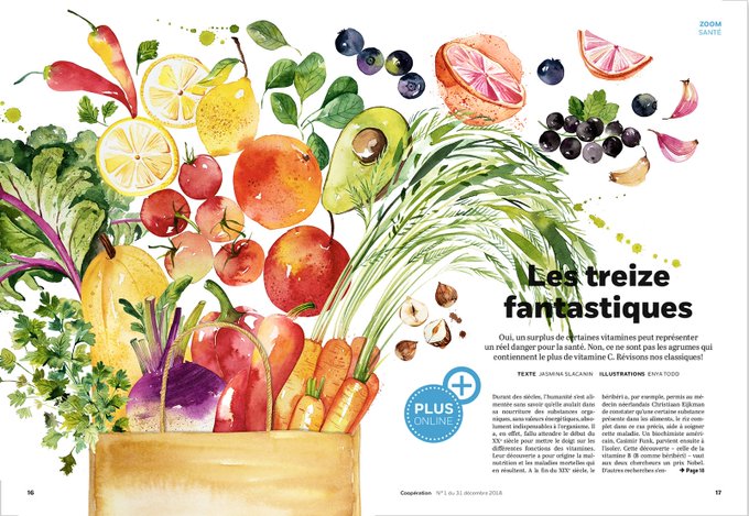 #TheFantasticThirteen : Coop Magazine @coop_ch commission @EnyaTodd to illustrate thirteen vitamin-packed foods for their January issue https://t.co/8n4CdmFTYy