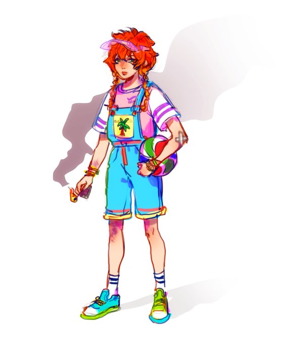 sorry no art in so long, here;s an old concept sketch of a pyro oc for @catsfromspace psycho-mansion storyline thing
