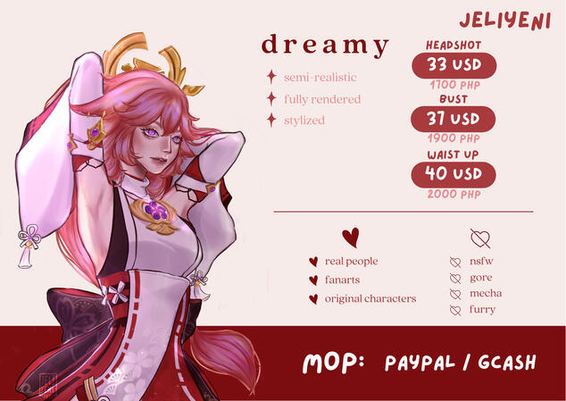 Hello! I'm Yeni, a ph artist. after reading a lot of twts that paypal might be banned from ph if you know who became president, i decided to open my commissions earlier than expected. Please help me have clients. Thank you so much, RTs are very much appreciated. (1/2) #commission