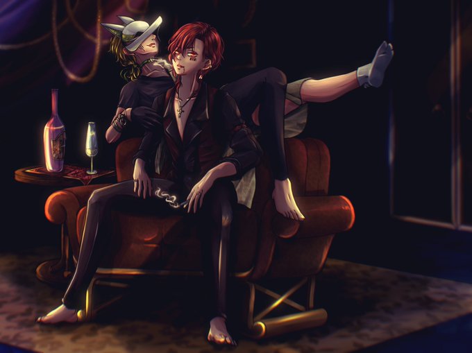 #しゃみゑ #ヌビアート 19時から34Sの新しいMV解禁らしい☺️ YouTube開いて待機しような 推しのレヴィちゃんが歌っててもう既に死にそうなんだ😇 あと話変わるけど さしすが撮らせてくれなさそうなシチュで腹立ったからお絵描きした 裸足なのは個人的趣味です