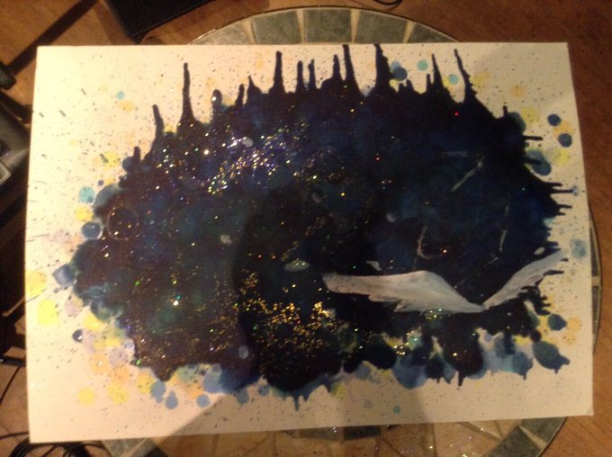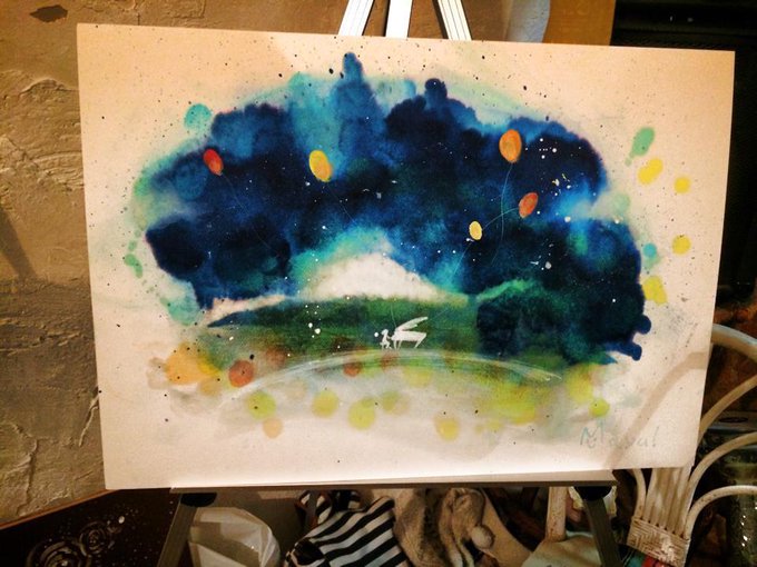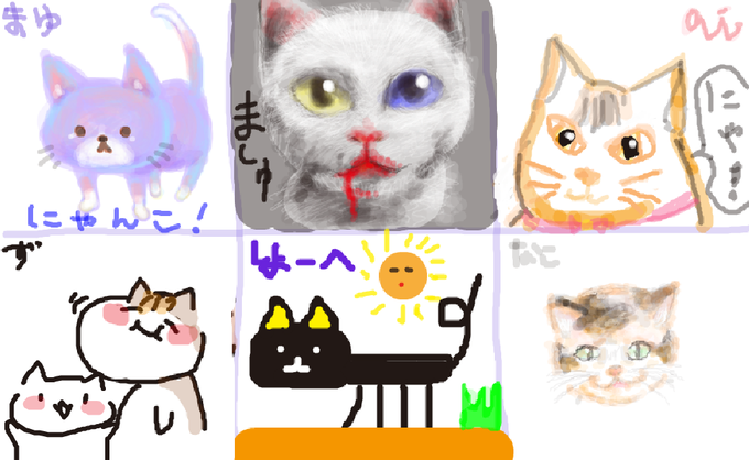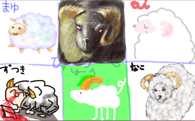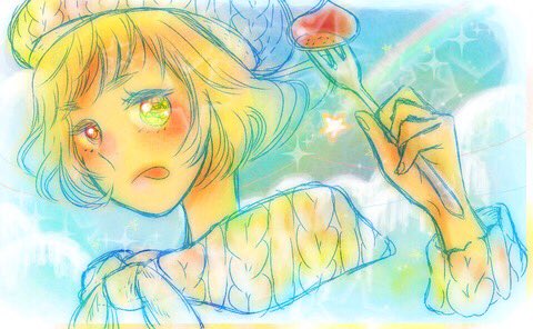 使用画材はコピック、アクリル、色鉛筆、クレヨン、ボールペン、化粧品です。