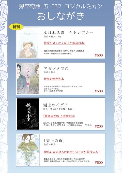 F32 ロジカルミカン 獄卒奇譚五のお品書きと簡易新刊サンプルです!当日はよろしくお願いします!
