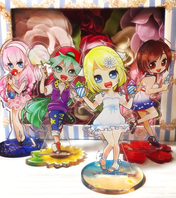 女の子たちのアクスタ✨アクスタもはじめて作った!台座がめちゃ可愛いので見てください…( ˘͈ ᵕ ˘͈ )台座の種類は固定ですが、同じマイドゥーさんで作ってるので取り替えっこしてもぴったりハマります!12日、夏コミ持っていきます〜✌️