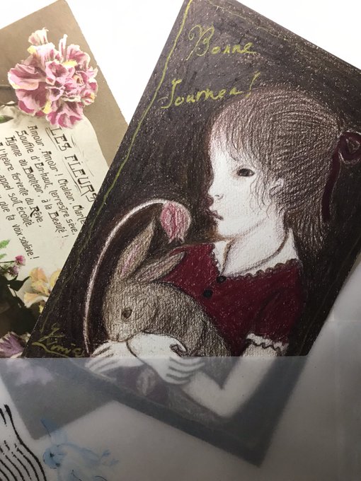 遺品の中から見つけたと言う吉田キミコのCardをみて、突然森のcaféに訪ねて来た人。その人も何年ぶりの懐かしい人。出逢いとは不思議に思う。そして天国からも又支えて下さっているかの様に久しぶりの方が絵をお迎え下さった幸せに感謝と祈りを🙏