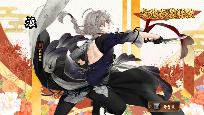 浪くんに続き、狗牙丸くん[剣]と狗牙丸くん[刻]の突破衣装もやっと解放できた◎