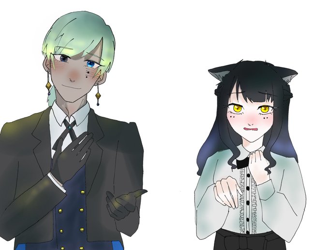 #おてつき_関係報告 遅れました〜😭😭みーすけさん宅のカインさんと自宅のネロでCP組ませて頂きました🥰🥳🥳お話ゆっくり聞いてくれるカインさんにどんどん心寄せてくネロです。 今後とも親子、みーすけさん共々よろしくお願いいたします🥰🥰