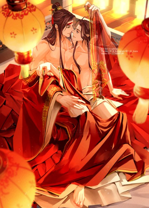 婚礼忘羨!結婚おめでとう😭🙏😭🙏 婚礼の赤、そして魏嬰カラーの赤に染まる二人は良いですね…! アンソロジーへのお誘いありがとうございました! *1枚目が寄稿の絵で、2枚目は没ったちゅー絵です😘😘 #春綻盛意 #忘羨