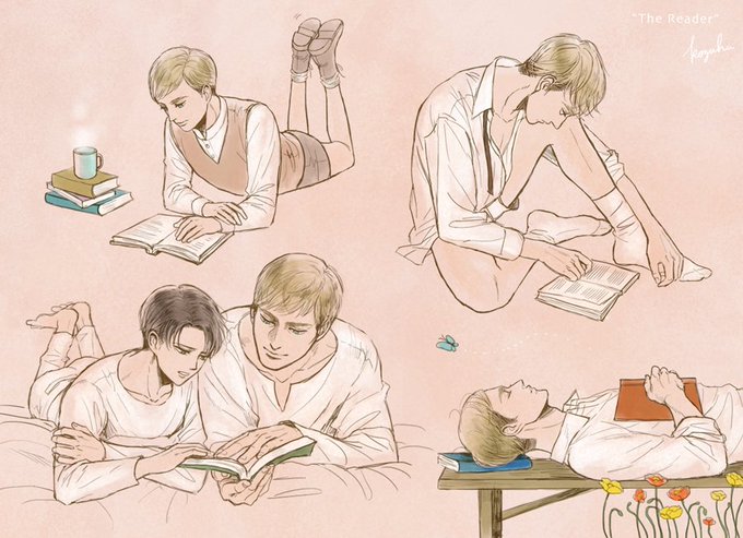 昔の絵ですが 本が無造作に積まれたえるびんのお部屋がいとおしくて。 左下のは分ゴロのつもりで描いたんですけど、パパから貰った本でりばいに色んなこと教えてあげたり、妄想語ったりしてたら素敵。。