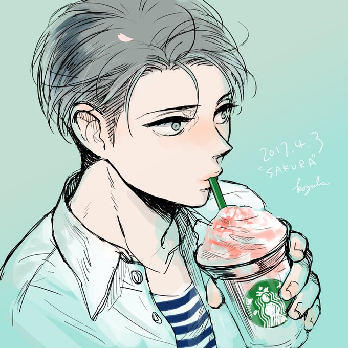 #リヴァイ版深夜の真剣お絵描き60分1本勝負 お題「桜」 さくらフラペチーノ、今年も飲み損ねたー