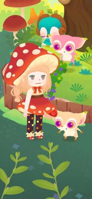 ホホホと微笑んでしまう心地よい森🍄 と、水玉キノコファッション🍄 #リヴリーレイアウト #うちのリヴリー #うちのホム