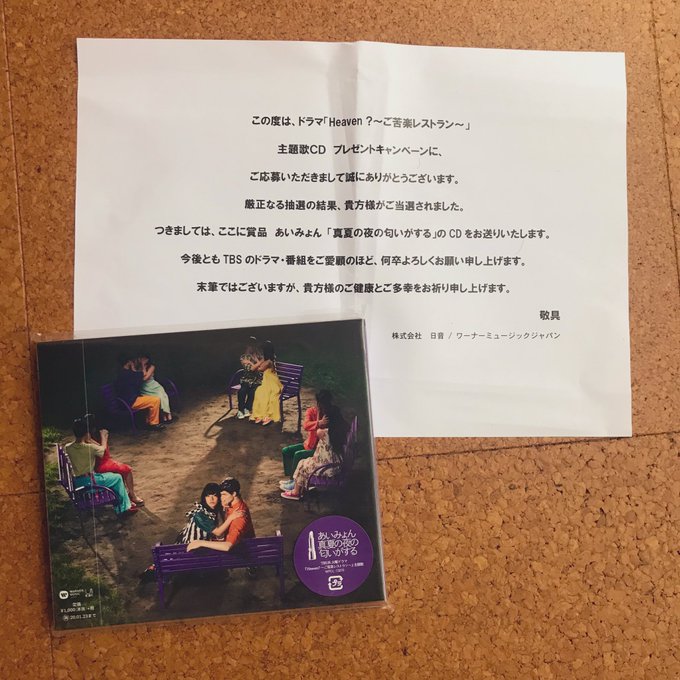 ふぁ!あ!え!や! 帰ってきたHeaven?のドラマで応募したあいみょんのCDが届いてたー⸜( ´ ꒳ ` )⸝♡︎ 嬉しいよー!!!