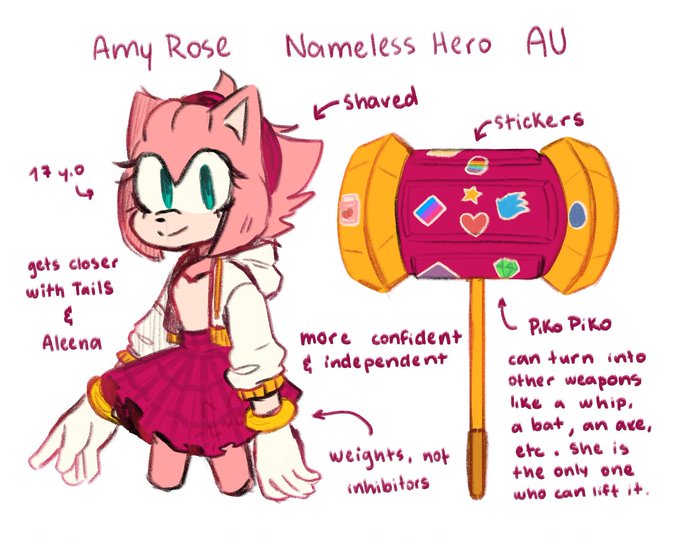 A poorly done reference sheet of Amy Rose for my Sonic au called Nameless Hero