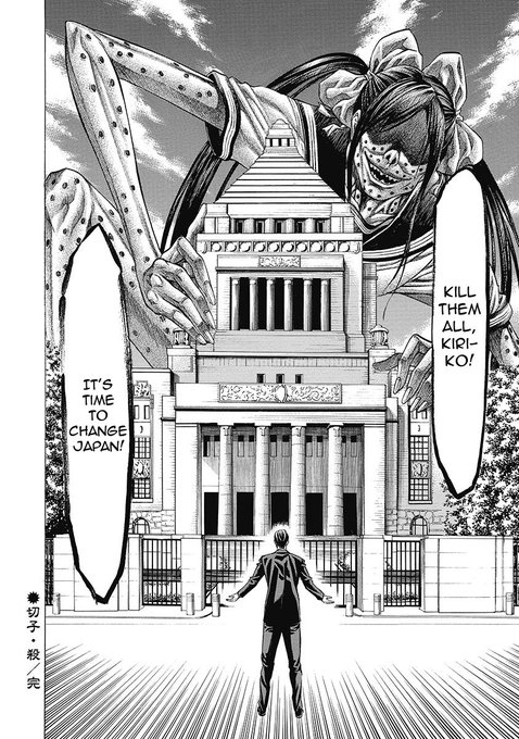 I thought I was reading a simple high school horror manga, didn't expect it to end up with the ghost (under control by her lover) to overthrow the Japanese government.