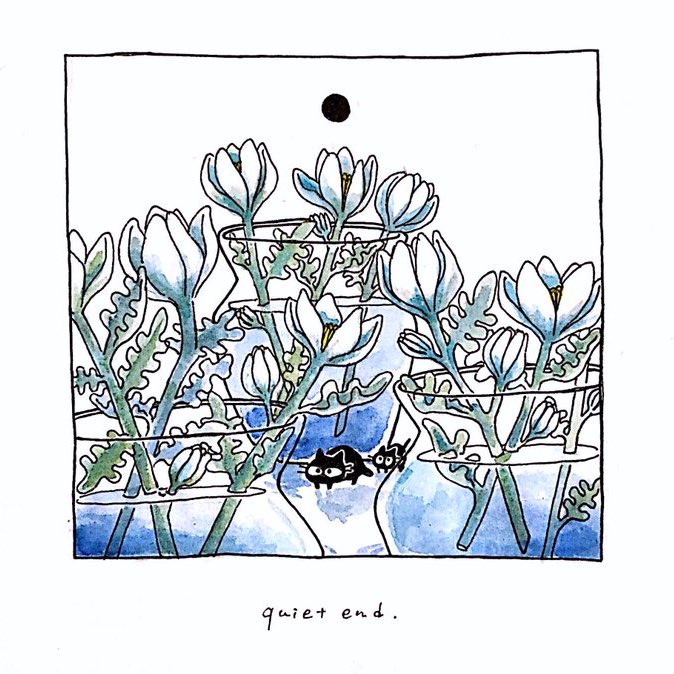 たなかさん(@azplanetaz ) からバトンを渡していただきました🦆 黒猫と植物の絵を4枚🌿 #絵描き繫がれ