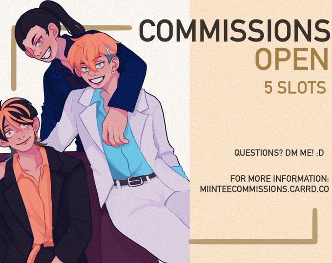 Hello! My commissions are open for 5 slots only this month! If you have any questions, you can dm me!